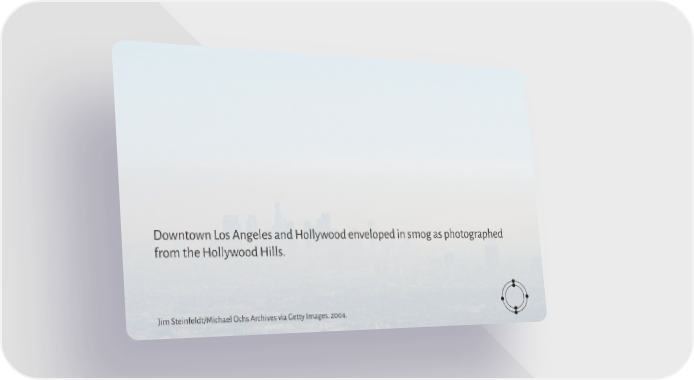 Downtown Los Angeles and Hollywood enveloped in smog as photographed from the Hollywood Hills. Jim Steinfeldt/Michael Ochs Archives via Getty Images. 2004.