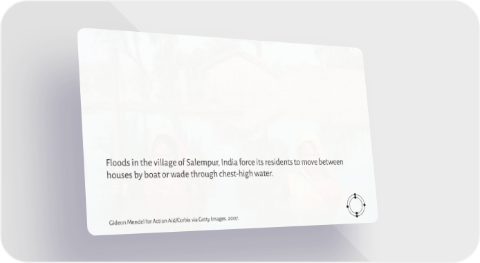 Planet in Peril Page 22 Page 24Floods in the village of Salempur, India force its residents to move between houses by boat or wade through chest-high water. Gideon Mendel for Action Aid/Corbis via Getty Images. 2007.