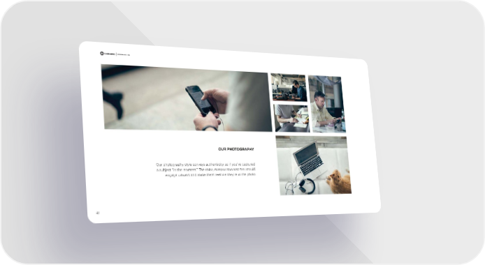 BRAND GUIDELINES OUR PHOTOGRAPHY Our photography style conveys authenticity, as if you’ve captured a subject “in the moment .” The color, composition and feel should engage viewers and make them feel like they’re in the photo . 41