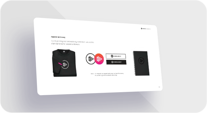 BRAND GUIDELINES Apparel and swag Due to printing and embroidering restrictions, we use the alternate logos for apparel and swag . Note: On internal-use apparel and swag, we have the leeway to use the logo and wordmark separately . 32