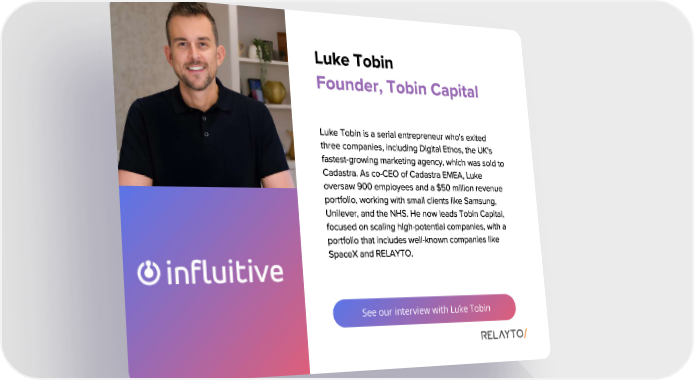 See our interview with Luke Tobin Luke Tobin Luke Tobin is a serial entrepreneur who ' s exited three companies , including Digital Ethos , the UK ' s fastest - growing marketing agency , which was sold to Cadastra . As co - CEO of Cadastra EMEA , Luke oversaw 900 employees and a $ 50 million revenue portfolio , working with small clients like Samsung , Unilever , and the NHS . He now leads Tobin Capital , focused on scaling high - potential companies , with a portfolio that includes well - known companies like SpaceX and RELAYTO . Founder , Tobin Capital