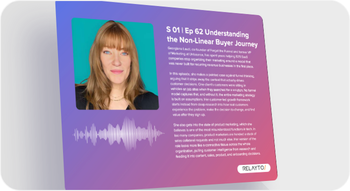 S 01 | Ep 62 Understanding the Non - Linear Buyer Journey Georgiana Laudi , co - founder of Forget the Funnel and former VP of Marketing at Unbounce , has spent years helping B2B SaaS companies stop organizing their marketing around a model that was never built for recurring revenue businesses in the first place . In this episode , she makes a pointed case against funnel thinking , arguing that it strips away the context that actually drives customer decisions . One client ' s customers were sitting in vehicles on job sites when they searched for a solution . No funnel model captures that , and without it , the entire marketing strategy is built on assumptions . Her customer - led growth framework starts instead from deep research into how real customers experience the problem , make the decision to change , and find value after they sign up . She also gets into the state of product marketing , which she believes is one of the most misunderstood functions in tech . In too many companies , product marketers are handed a stack of sales collateral requests and not much else . Her version of the role looks more like a connective tissue across the whole organization , pulling customer intelligence from research and feeding it into content , sales , product , and onboarding decisions .