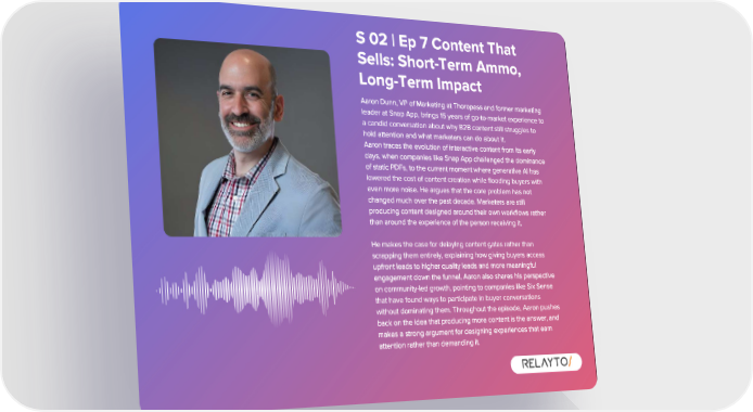S 02 | Ep 7 Content That Sells : Short - Term Ammo , Long - Term Impact Aaron Dunn , VP of Marketing at Thoropass and former marketing leader at Snap App , brings 15 years of go - to - market experience to a candid conversation about why B2B content still struggles to hold attention and what marketers can do about it . Aaron traces the evolution of interactive content from its early days , when companies like Snap App challenged the dominance of static PDFs , to the current moment where generative AI has lowered the cost of content creation while flooding buyers with even more noise . He argues that the core problem has not changed much over the past decade . Marketers are still producing content designed around their own workflows rather than around the experience of the person receiving it . He makes the case for delaying content gates rather than scrapping them entirely , explaining how giving buyers access upfront leads to higher quality leads and more meaningful engagement down the funnel . Aaron also shares his perspective on community - led growth , pointing to companies like Six Sense that have found ways to participate in buyer conversations without dominating them . Throughout the episode , Aaron pushes back on the idea that producing more content is the answer , and makes a strong argument for designing experiences that earn attention rather than demanding it .