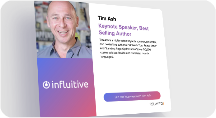 See our interview with Tim Ash Tim Ash Tim Ash is a highly - rated keynote speaker , presenter , and bestselling author of “ Unleash Your Primal Brain ” and “ Landing Page Optimization ” ( over 50 , 000 copies sold worldwide and translated into six languages ). Keynote Speaker , Best Selling Author
