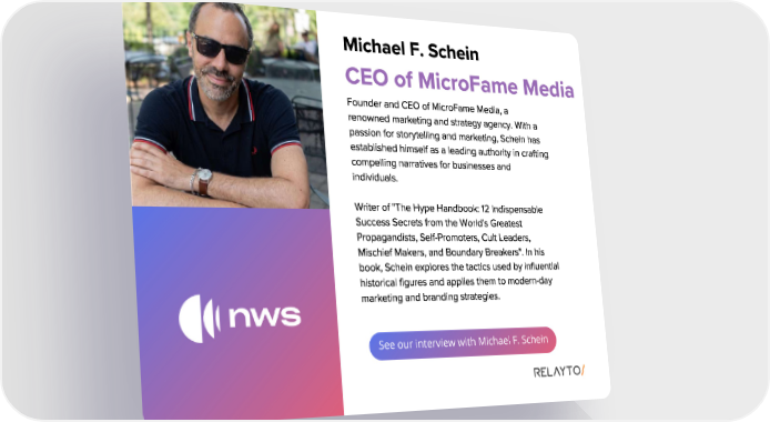 See our interview with Michael F. Schein Michael F . Schein Founder and CEO of MicroFame Media , a renowned marketing and strategy agency . With a passion for storytelling and marketing , Schein has established himself as a leading authority in crafting compelling narratives for businesses and individuals . Writer of " The Hype Handbook : 12 Indispensable Success Secrets from the World ' s Greatest Propagandists , Self - Promoters , Cult Leaders , Mischief Makers , and Boundary Breakers ". In his book , Schein explores the tactics used by influential historical figures and applies them to modern - day marketing and branding strategies . CEO of MicroFame Media