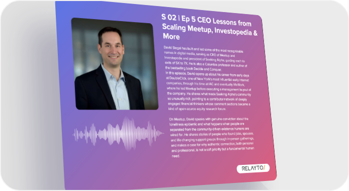 S 02 | Ep 5 CEO Lessons from Scaling Meetup , Investopedia & More David Siegel has built and led some of the most recognizable names in digital media , serving as CEO of Meetup and Investopedia and president of Seeking Alpha , guiding each to exits of 5X to 7X . He is also a Columbia professor and author of the bestselling book Decide and Conquer . In this episode , David opens up about his career from early days at DoubleClick , one of New York ' s most influential early internet companies , through his time at IAC and eventually WeWork , where he led Meetup before executing a management buyout of the company . He shares what made Seeking Alpha ' s community so unusually rich , pointing to a contributor network of deeply engaged financial thinkers whose comment sections became a kind of open - source equity research forum . On Meetup , David speaks with genuine conviction about the loneliness epidemic and what happens when people are separated from the community - driven existence humans are wired for . He shares stories of people who found jobs , spouses , and life - changing support groups through in - person gatherings , and makes a case for why authentic connection , both personal and professional , is not a soft priority but a fundamental human need .