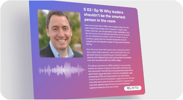 S 02 | Ep 16 Why leaders shouldn ’ t be the smartest person in the room Kevin Lee founded Didit in 1996 , before Google existed , and has spent nearly three decades at the intersection of search , paid media , direct mail , and now generative engine optimization . He is also the founder of the e - Marketing Association and its nonprofit arm , the e - Marketing Foundation , where he creates hands - on marketing opportunities for international graduate students navigating the US immigration system through optional practical training . Kevin discusses what makes agency work sustainable , which is deep subject matter expertise in each channel rather than one generalist trying to do everything , and a trust - first model of entering client relationships by solving the problem they already know they have before pitching anything bigger . This episode gets into one of B2B marketing ' s most persistent tensions , the practice of gating content behind lead forms and then delivering it in formats that almost guarantee people will not read it . Kevin argues that friction in the form of registration walls , downloadable PDFs , and disconnected video links actively undermines the trust that marketing is supposed to build . His view is that information wants to be free , and that the companies who make their expertise easy to find and consume will always outperform those who try to lock it down .