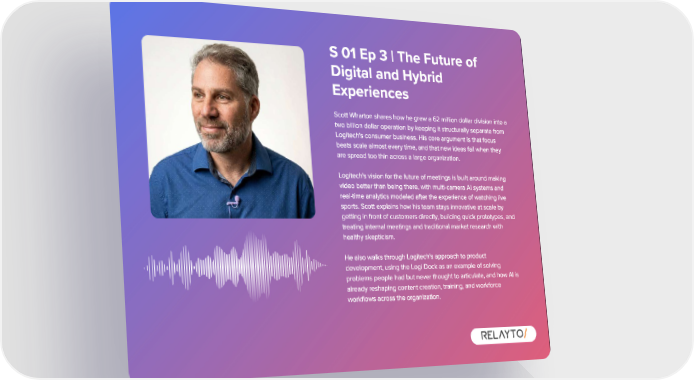 S 01 Ep 3 | The Future of Digital and Hybrid Experiences Scott Wharton shares how he grew a 62 million dollar division into a two billion dollar operation by keeping it structurally separate from Logitech ' s consumer business . His core argument is that focus beats scale almost every time , and that new ideas fail when they are spread too thin across a large organization . Logitech ' s vision for the future of meetings is built around making video better than being there , with multi - camera AI systems and real - time analytics modeled after the experience of watching live sports . Scott explains how his team stays innovative at scale by getting in front of customers directly , building quick prototypes , and treating internal meetings and traditional market research with healthy skepticism . He also walks through Logitech ' s approach to product development , using the Logi Dock as an example of solving problems people had but never thought to articulate , and how AI is already reshaping content creation , training , and workforce workflows across the organization .