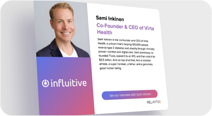 See our interview with Sami Inkinen Sami Inkinen Sami Inkinen is the co - founder and CEO of Virta Health , a unicorn that ’ s helping 100 , 000 people reverse type 2 diabetes and obesity through clinically proven nutrition and digital care . Sami previously co - founded Trulia , scaled it to an IPO , and then sold it for $ 3 . 5 billion . And on top of all that , he ’ s a rockstar athlete , a super Ironman , a father , and a genuinely good human being . Co - Founder & CEO of Virta Health