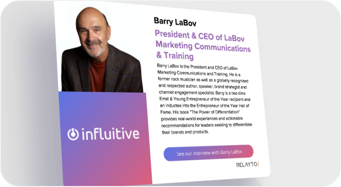 See our interview with Barry LaBov Barry LaBov Barry LaBov is the President and CEO of LaBov Marketing Communications and Training . He is a former rock musician as well as a globally recognized and respected author , speaker , brand strategist and channel engagement specialist . Barry is a two - time Ernst & Young Entrepreneur of the Year recipient and an inductee into the Entrepreneur of the Year Hall of Fame . His book ” The Power of Differentiation ” provides real - world experiences and actionable recommendations for leaders seeking to differentiate their brands and products . President & CEO of LaBov Marketing Communications & Training