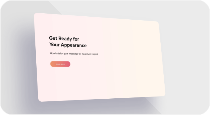 Get Ready for Your Appearance How to tailor your message for maximum impact Learn More Podcast Promotion & Guest Experience Page 9 Page 11Video Player is loading.Play VideoPlaySkip BackwardSkip ForwardMuteCurrent Time 0:00/Duration -:-Loaded: 0%0:00Stream Type LIVESeek to live, currently behind liveLIVERemaining Time --:- 1xPlayback RateChaptersChaptersDescriptionsdescriptions off, selectedCaptionscaptions settings, opens captions settings dialogcaptions off, selectedAudio TrackPicture-in-PictureFullscreenThis is a modal window.The media could not be loaded, either because the server or network failed or because the format is not supported.Beginning of dialog window. Escape will cancel and close the window.TextColorWhiteBlackRedGreenBlueYellowMagentaCyanOpacityOpaqueSemi-TransparentText BackgroundColorBlackWhiteRedGreenBlueYellowMagentaCyanOpacityOpaqueSemi-TransparentTransparentCaption Area BackgroundColorBlackWhiteRedGreenBlueYellowMagentaCyanOpacityTransparentSemi-TransparentOpaqueFont Size50%75%100%125%150%175%200%300%400%Text Edge StyleNoneRaisedDepressedUniformDrop shadowFont FamilyProportional Sans-SerifMonospace Sans-SerifProportional SerifMonospace SerifCasualScriptSmall CapsResetDoneClose Modal DialogEnd of dialog window.