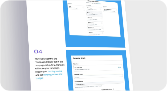 How to get started 03 Choose "Pre-roll Views" from the list of campaign objectives. 04 You'll be brought to the "Campaign Details" tab of the campaign setup form. Here you will name your campaign, choose your funding source, and set campaign dates and budget. 20
