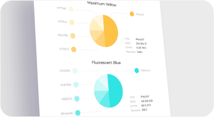 29 Maximum Yellow #fff0c2 #fedf9b #ffd173 #fff7e0 #fec247 HEX: RGB: CMYK: Pantone: #fec247 254 194 71 0 28 79 0 7404 Fluorescent Blue #cbf8f8 #98f2f2 #64ebeb #e5fbfb #30e4e4 HEX: RGB: CMYK: Pantone: #fec247 48 228 228 60 0 21 0 319 C 37