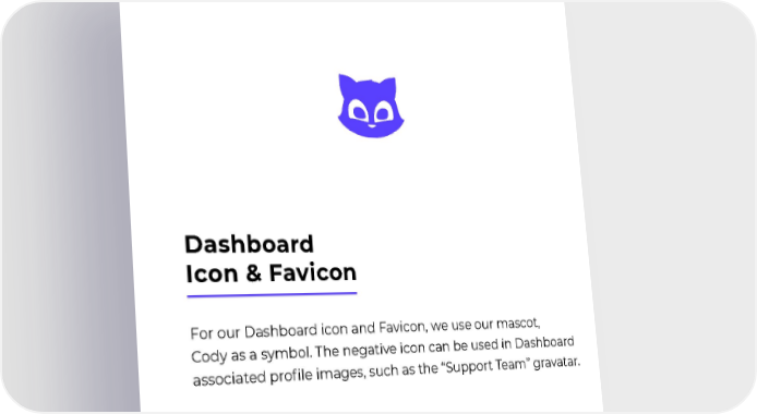 For our Dashboard icon and Favicon, we use our mascot, Cody as a symbol. The negative icon can be used in Dashboard associated profile images, such as the “Support Team” gravatar. Dashboard Icon & Favicon 16 22