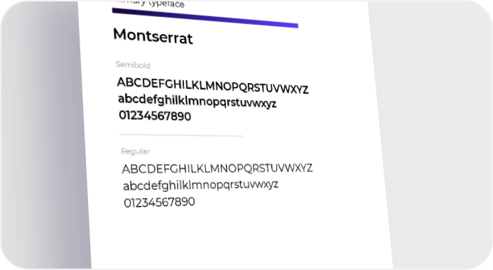 40 Primary typeface Montserrat ABCDEFGHILKLMNOPQRSTUVWXYZ abcdefghilklmnopqrstuvwxyz 01234567890 Semibold Regular ABCDEFGHILKLMNOPQRSTUVWXYZ abcdefghilklmnopqrstuvwxyz 01234567890