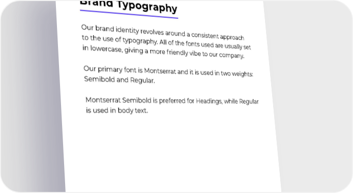 38 Our brand identity revolves around a consistent approach to the use of typography. All of the fonts used are usually set in lowercase, giving a more friendly vibe to our company. Our primary font is Montserrat and it is used in two weights: Semibold and Regular. Montserrat Semibold is preferred for Headings, while Regular is used in body text. Brand Typography