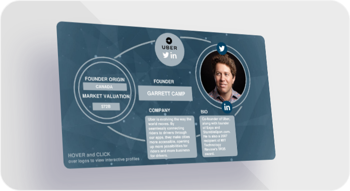 FOUNDER ORIGIN FOUNDER CANADA IRAQ GARRETT CAMP MARKET VALUATION DAVID HINDAWI $5B $72B COMPANY BIO ove Uber is evolving the way the Co-founder of Uber, r world moves. By along with founder seamlessly connecting of Expa and log riders to drivers through StumbleUpon.com. os our apps, they make cities He is also a 2007 to more accessible, opening recipient of MIT up more possibilities for Technology HOVER and CLICK riders and more business Review's TR35 over logos to view interactive profiles for drivers. award.