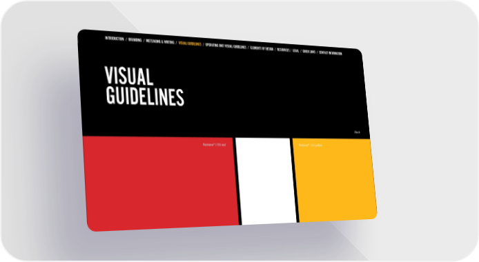 INTRODUCTION / BRANDING / MESSAGING & WRITING / VISUAL GUIDELINES / OPERATING UNIT VISUAL GUIDELINES / ELEMENTS OF DESIGN / RESOURCES / LEGAL / QUICK LINKS / CONTACT INFORMATION VISUAL GUIDELINES Black PantoneĀ® 1795 red PantoneĀ® 1235 yellow PAGE 10