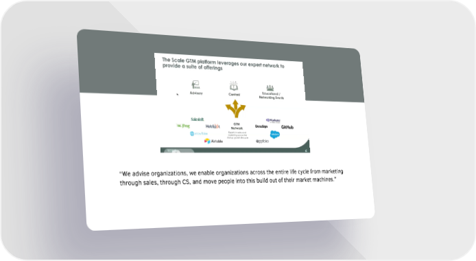 “We advise organizations, we enable organizations across the entire life cycle from marketing through sales, through CS, and move people into this build out of their market machines.”