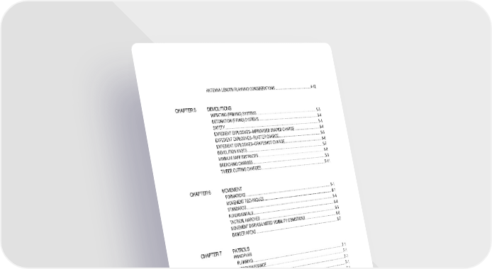 ix ANTENNA LENGTH PLANNING CONSIDERATIONS ................................................. 4-12 CHAPTER 5 DEMOLITIONS INITIATING (PRIMING) SYSTEMS .................................................................................. 5-3 DETONATION (FIRING) SYSTEMS................................................................................. 5-4 SAFETY.............................................................................................................................. 5-4 EXPEDIENT EXPLOSIVES--IMPROVISED SHAPED CHARGE ................................... 5-4 EXPEDIENT EXPLOSIVES--PLATTER CHARGE .......................................................... 5-5 EXPEDIENT EXPLOSIVES--GRAPESHOT CHARGE.................................................... 5-6 DEMOLITION KNOTS ....................................................................................................... 5-7 MINIMUM SAFE DISTANCES .......................................................................................... 5-8 BREACHING CHARGES .................................................................................................. 5-8 TIMBER CUTTING CHARGES ....................................................................................... 5-11 CHAPTER 6 MOVEMENT FORMATIONS ................................................................................................................... 6-1 MOVEMENT TECHNIQUES ............................................................................................. 6-1 STANDARDS ..................................................................................................................... 6-4 FUNDAMENTALS.............................................................................................................. 6-4 TACTICAL MARCHES ...................................................................................................... 6-5 MOVEMENT DURING LIMITED VISIBILITY CONDITIONS ........................................... 6-6 DANGER AREAS .............................................................................................................. 6-7 CHAPTER 7 PATROLS PRINCIPLES PLANNING ......................................................................................................................... 7-1 RECONNAISSANCE ......................................................................................................... 7-1 SECURITY ......................................................................................................................... 7-1 CONTROL .......................................................................................................................... 7-1 COMMON SENSE ............................................................................................................. 7-1 PLANNING TASK ORGANIZATION ..................................................................................................... 7-1 INITIAL PLANNING AND COORDINATION .................................................................... 7-3 COMPLETION OF PLAN .................................................................................................. 7-3 RECONNAISSANCE PATROLS FUNDAMENTALS OF RECONNAISSANCE ................................................................... 7-5 TASK STANDARDS .......................................................................................................... 7-5 ACTIONS ON THE OBJECTIVE, AREA RECONNAISSANCE ...................................... 7-5 ACTIONS ON THE OBJECTIVE, ZONE RECONNAISSANCE ...................................... 7-8 COMBAT PATROLS