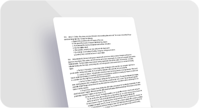 15 - 9 15-5. SAFETY. Safety is the primary concern of all leaders when operating in/around aircraft. The inclusion of aircraft into Ranger operations brings high risks. Consider the following: a. Approach the aircraft from 45 to 90 degrees off the nose. b. Point upward the muzzles of weapons with blank firing adapters. c. Point downward the muzzles of weapons loaded with live ammunition. d. Wear the ballistic helmet. e. When possible, conduct an air crew safety brief with all personnel. f. At a minimum, cover loading/ off loading, emergency, and egress procedures. g. [Leaders] Carry a manifest and turn in a copy to higher. 15-6. REQUIREMENTS. Minimum landing space requirements and minimum distance between helicopters on the ground depend on many factors. If the aviation unit SOP does not spell out these requirements, the aviation unit commander works with the Pathfinder leader. The final decision about minimum landing requirements rests with the aviation unit commander. In selecting helicopter landing sites from maps, aerial photographs, and actual ground or aerial reconnaissance, he considers the following factors: a. Number of Helicopters. To land a large number of helicopters at the same time, the commander might have to provide another landing site(s) nearby. Or, he can land the helicopters at the same site, but in successive lifts. b. Landing Formations. Helicopter pilots should try to match the landing formation to the flight formation. Pilots should have to modify their formations no more than necessary to accommodate the restrictions of a landing site. However, in order to land in a restrictive area, they might have to modify their formation somewhat. c. Surface Conditions. Rangers choose landing sites that have firm surfaces. This prevents helicopters from bogging down, creating excessive dust, or blowing snow. Rotor wash stirs up any loose dirt, sand, or snow. This can obscure the ground, especially at night. Rangers remove these and any other debris from landing points, since airborne debris could damage the rotor blades or turbine engine(s). d. Ground Slope. Rangers choose landing sites with relatively level ground. For the helicopter to land safely, the slope should not exceed 7 degrees. Whenever possible, pilots should land upslope rather than downslope. All helicopters can land where ground slope measures 7 degrees or less (Figure 15-13). (1) Day Operation Signals. For daylight operations, you can use different smoke colors for each landing site. You can use the same color more than once, just spread them out. Use smoke only if you have to, because the enemy can see it, too. Try to use it only when the pilot asks for help locating his helicopter site. (2) Night Operation Signals. For night operations, use pyrotechnics or other visual signals in lieu of smoke. As in daylight, red signals mean "Do not land," but you can also use them to indicate other emergency conditions. All concerned must plan and know emergency codes. Each flight lands at the assigned site according to CC messages and the visual aids displayed. You can use arm and hand signals to help control the landing, hovering, and parking of helicopters.