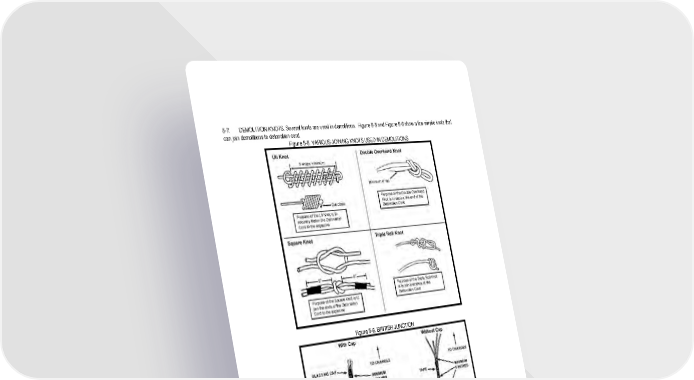 5 - 7 5-7. DEMOLITION KNOTS. Several knots are used in demolitions. Figure 5-5 and Figure 5-6 show a few simple knots that can join demolitions to detonation cord. Figure 5-5. VARIOUS JOINING KNOTS USED IN DEMOLITIONS Figure 5-6. BRITISH JUNCTION