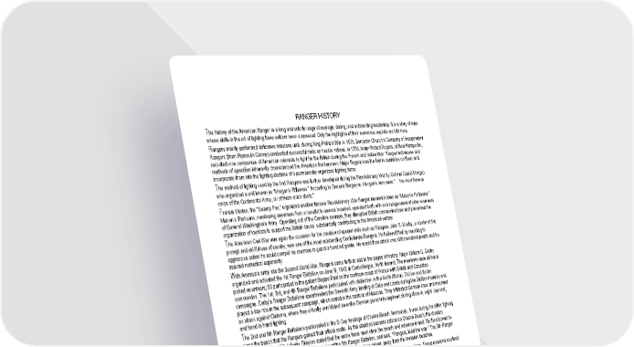 i RANGER HISTORY The history of the American Ranger is a long and colorful saga of courage, daring, and outstanding leadership. It is a story of men whose skills in the art of fighting have seldom been surpassed. Only the highlights of their numerous exploits are told here. Rangers mainly performed defensive missions until, during King Phillip’s War in 1675, Benjamin Church’s Company of Independent Rangers (from Plymouth Colony) conducted successful raids on hostile Indians. In 1756, Major Robert Rogers, of New Hampshire, recruited nine companies of American colonists to fight for the British during the French and Indian War. Ranger techniques and methods of operation inherently characterized the American frontiersmen. Major Rogers was the first to capitalize on them and incorporate them into the fighting doctrine of a permanently organized fighting force. The method of fighting used by the first Rangers was further developed during the Revolutionary War by Colonel Daniel Morgan, who organized a unit known as “Morgan’s Riflemen.” According to General Burgoyne, Morgan’s men were “….the most famous corps of the Continental Army, all of them crack shots.” Francis Marion, the “Swamp Fox,” organized another famous Revolutionary War Ranger element known as “Marion’s Partisans.” Marion’s Partisans, numbering anywhere from a handful to several hundred, operated both with and independent of other elements of General Washington’s Army. Operating out of the Carolina swamps, they disrupted British communications and prevented the organization of loyalists to support the British cause, substantially contributing to the American victory. The American Civil War was again the occasion for the creation of special units such as Rangers. John S. Mosby, a master of the prompt and skillful use of cavalry, was one of the most outstanding Confederate Rangers. He believed that by resorting to aggressive action he could compel his enemies to guard a hundred points. He would then attack one of the weakest points and be assured numerical superiority. With America’s entry into the Second World War, Rangers came forth to add to the pages of history. Major William O. Darby organized and activated the 1st Ranger Battalion on June19, 1942 at Carrickfergus, North Ireland. The members were all hand picked volunteers; 50 participated in the gallant Dieppe Raid on the northern coast of France with British and Canadian commandos. The 1st, 3rd, and 4th Ranger Battalions participated with distinction in the North African, Sicilian and Italian campaigns. Darby’s Ranger Battalions spearheaded the Seventh Army landing at Gela and Licata during the Sicilian invasion and played a key role in the subsequent campaign, which ended in the capture of Messina. They infiltrated German lines and mounted an attack against Cisterna, where they virtually annihilated an entire German parachute regiment during close in, night, bayonet, and hand to hand fighting. The 2nd and 5th Ranger Battalions participated in the D Day landings at Omaha Beach, Normandy. It was during the bitter fighting along the beach that the Rangers gained their official motto. As the situation became critical on Omaha Beach, the division commander of the 29th Infantry Division stated that the entire force must clear the beach and advance inland. He then turned to Lieutenant Colonel Max Schneider, Commander of the 5th Ranger Battalion, and said, “Rangers, lead the way.” The 5th Ranger Battalion spearheaded the breakthrough. This enabled the Allies to drive inland, away from the invasion beaches. The 6th Ranger Battalion, operating in the Pacific, conducted Ranger-type missions behind enemy lines. These missions involved reconnaissance and hard hitting, long-range raids. These Rangers were the first American group to return to the Philippines, destroying key coastal installations prior to the invasion. A reinforced company from the 6th Ranger Battalion formed the rescue force that liberated American and Allied POWs from the Japanese prison camp at Cabanatuan. Another Ranger type unit was the 5307th Composite Unit (Provisional), organized and trained as a long range penetration unit for employment behind enemy lines in Japanese occupied Burma. The unit commander was Brigadier General (later Major General) Frank D. Merrill. Its 2,997 officers and men became popularly known as “Merrill’s Marauders.” The men of Merrill’s Marauders were volunteers from the 5th, 154th, and 33rd Infantry Regiments and from other Infantry regiments engaged in combat in the Southwest and South Pacific. These men responded to a call from Chief of Staff, General George C. Marshall, for volunteers for a hazardous mission. These volunteers were to have a high state of physical ruggedness and stamina and were to come from jungle trained and jungle tested units. Before joining the Northern Burma Campaign, Merrill’s Marauders trained in India under British Major General Orde C. Wingate. From February to June 1943, they learned long range penetration tactics and techniques like those developed and first employed by General Wingate. The operations of the Marauders were closely coordinated with those of the Chinese 22nd and 38th Divisions in a