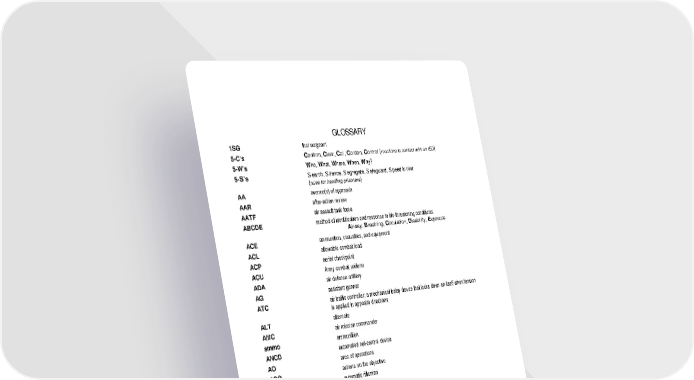 Glossary - 1 GLOSSARY 1SG first sergeant 5-C’s Confirm, Clear, Call, Cordon, Control (reactions to contact with an IED) 5-W’s Who, What, Where, When, Why? 5-S’s Search, S ilence, Segregate, Safeguard, Speed to rear (rules for handling prisoners) AA avenue(s) of approach AAR after-action review AATF air assault task force ABCDE method of identification and response to life-threatening conditions: Airway, Breathing, Circulation, Disability, Exposure ACE ammunition, casualties, and equipment ACL allowable combat load ACP aerial checkpoint ACU Army combat uniform ADA air defense artillery AG assistant gunner ATC air traffic controller; a mechanical belay device that locks down on itself when tension is applied in opposite directions ALT alternate AMC air mission commander ammo ammunition ANCD automated net-control device AO area of operations AOO actions on the objective AR automatic rifleman ABF attack by fire ATL Alpha team leader ATM Alpha Team bangalore torpedo A manually emplaced, 1.5-meter long explosive-filled tube used to breach wire and detonate simple, pressure-activated antipersonnel mines. Ten tubes will clear a 1- by 15-meter lane. belay Any action taken to stop a climber's fall or to control the rate a load descends binos Binoculars BMNT begin morning nautical twilight BN battalion body belay belay that uses the belayer's body to apply friction by routing the rope around the his body bow line on a coil knot used to secure a climber to the end of a climbing rope