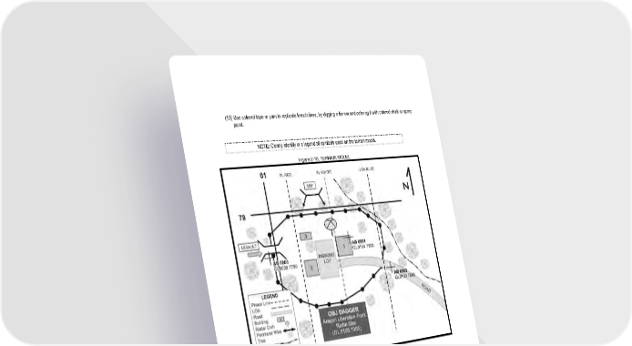 2 - 31 (13) Use colored tape or yarn to replicate trench lines, by digging a furrow and coloring it with colored chalk or spray paint. NOTE: Clearly identify in a legend all symbols used on the terrain model. Figure 2-16. TERRAIN MODEL