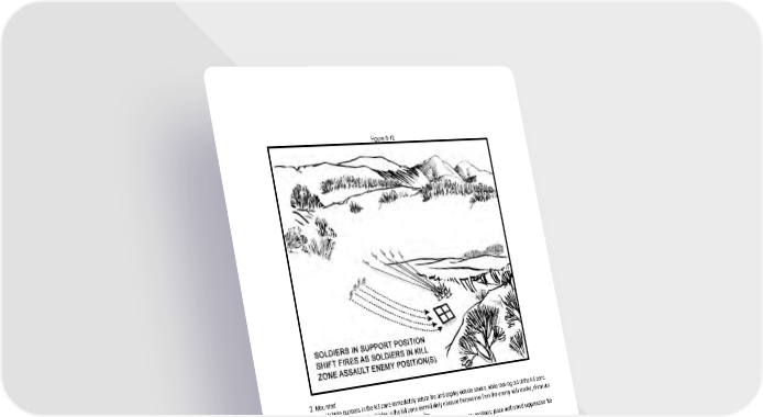 Figure 8-12 2. Mounted a. Vehicle gunners in the kill zone immediately return fire and deploy vehicle smoke, while moving out of the kill zone. b. Rangers in disabled vehicles in the kill zone immediately obscure themselves from the enemy with smoke, dismount if possible, seek covered positions, and return fire. c. Vehicle gunners and Rangers outside of the kill zone identify the enemy positions; place well aimed suppressive fire on the enemy, and shift fire as Rangers assault the objective. d. The unit leader calls for and adjusts indirect fire and request Close Air Support IAW METT-TC. e. Rangers in the kill zone assault through the ambush and destroy the enemy. f. The unit leader reports the contact to higher headquarters. Supporting Products The Infantry Rifle Platoon and Squad (FM 3-21.8) The SBCT Infantry Rifle Platoon and Squad (FM 3-21.9) Warrior Ethos and Soldier Combat Skills (FM 3-21.75)