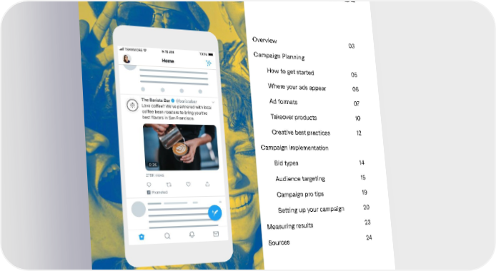 What’s covered Overview 03 Campaign Planning How to get started 05 Where your ads appear 06 Ad formats 07 Takeover products 10 Creative best practices 12 Campaign implementation Bid types 14 Audience targeting 15 Campaign pro tips 19 Setting up your campaign 20 Measuring results 23 Sources 24