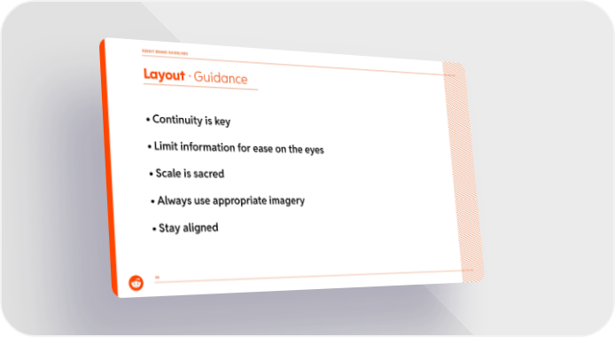 Reddit Brand Book Page 45 Page 47Layout · Guidance 46 • Continuity is key • Limit information for ease on the eyes • Scale is sacred • Always use appropriate imagery • Stay aligned REDDIT BRAND GUIDELINES
