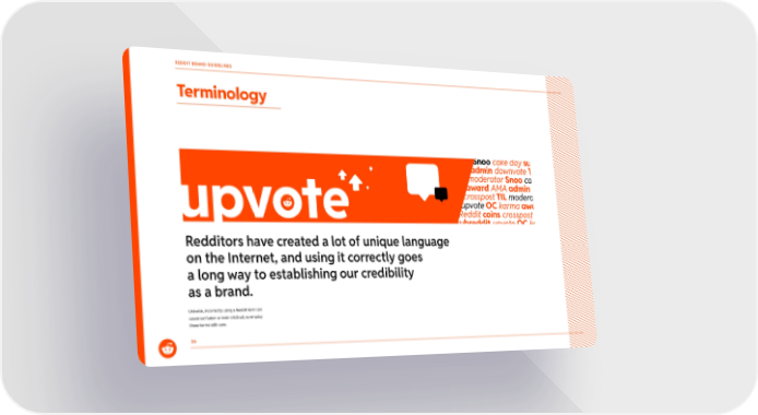 36 Terminology Redditors have created a lot of unique language on the Internet, and using it correctly goes a long way to establishing our credibility as a brand. Likewise, incorrectly using a Reddit term can cause confusion or even mistrust, so employ these terms with care. REDDIT BRAND GUIDELINES