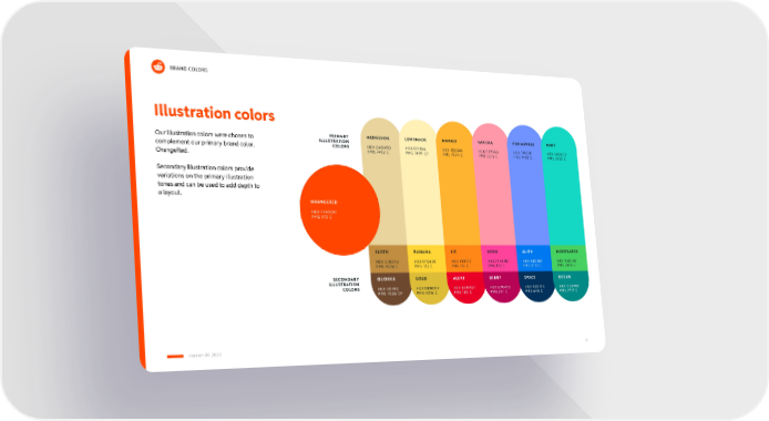 BRAND COLORS Our illustration colors were chosen to complement our primary brand color, OrangeRed. Secondary illustration colors provide variations on the primary illustration tones and can be used to add depth to a layout. Illustration colors 15 Version 09-2020 HEDGEHOG HEX EAD49D PMS 7402 C SLOTH HEX C18D42 PMS 4026 C QUOKKA HEX 6D482 PMS 4026 CF LEMONADE HEX FFF1B6 PMS 7499 CP BANANA HEX FFD635 PMS 122 C GOLD HEX DDBD37 PMS 4016 C MANGO HEX FEB331 PMS 7549 C LIT HEX FF8717 PMS 151 C ALERT HEX EA0027 PMS 185 C SAKURA HEX FF99AA PMS 3572 C NEON HEX FF439D PMS 178 C BERRY HEX B70455 PMS 241 C PERIWINKLE HEX 7193FF PMS 7452 C ALIEN HEX 0078EF PMS 2173 C SPACE HEX 02315C PMS 648 C MINT HEX 14D8C3 PMS 3255 C MODERATOR HEX 46D160 PMS 7488 C OCEAN HEX 008985 PMS 7717 C SECONDARY ILLUSTRATION COLORS PRIMARY ILLUSTRATION COLORS ORANGERED HEX FF4500 PMS 172 C