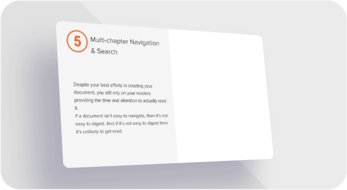 Multi-chapter Navigation & Search Despite your best efforts in creating your document, you still rely on your readers providing the time and attention to actually read it. If a document isn’t easy to navigate, then it’s not easy to digest. And if it’s not easy to digest then it’s unlikely to get read.
