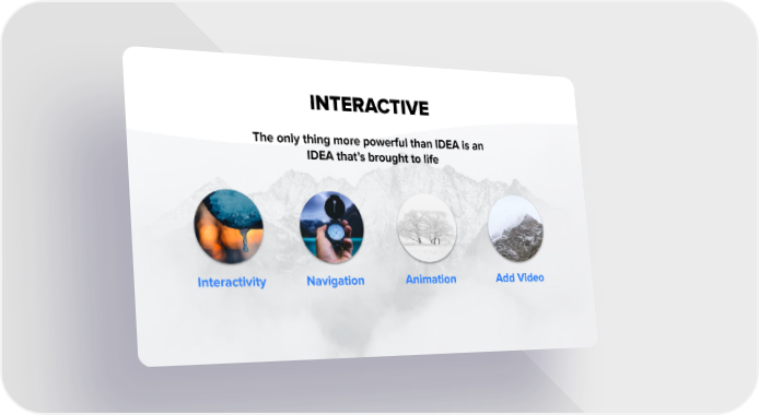 Add Video INTERACTIVE The only thing more powerful than IDEA is an IDEA that’s brought to life Interactivity Navigation Animation Add Video INTERACTIVE