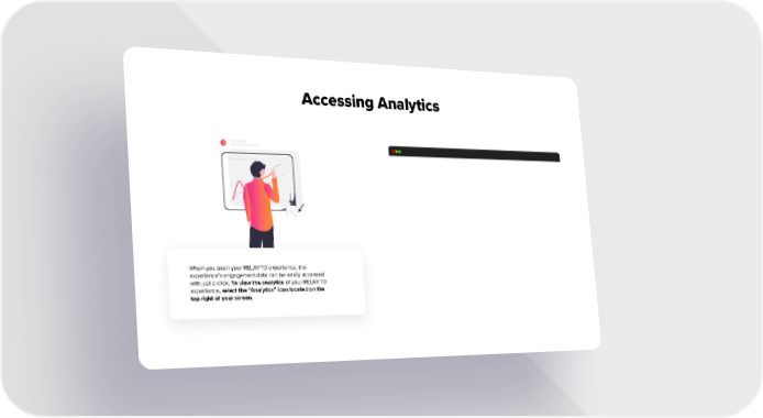 Accessing Analytics When you open your RELAYTO experience, the experience’s engagement data can be easily accessed with just a click. To view the analytics of your RELAYTO experience,select the “Analytics” icon located on the top right of your screen.