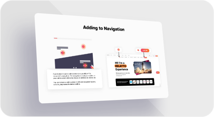 Adding to Navigation A good place to put a call-to-action is in your RELAYTO document’s navigation. The navigation is easily accessible, so your call-to-action will not be missed & will likely be clicked on. You can include a call-to-action in different navigation layouts, including top menu & sidebar outline.