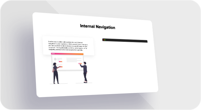 Internal Navigation Another way to utilize call-to-actions is to add internal navigation to your experience. When you add icons or images, you can use them to direct viewers to a specific page of your document. This is particularly useful for content pages, or for navigating viewers to the next document in your hub.