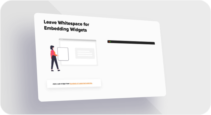 Leave Whitespace for Embedding Widgets Add a web widget from hundreds of supported websites. RELAYTO Best Practices for Design Page 17 Page 19Video Player is loading.Play VideoPlaySkip BackwardSkip ForwardMuteCurrent Time 0:00/Duration -:-Loaded: 0%0:00Stream Type LIVESeek to live, currently behind liveLIVERemaining Time --:- 1xPlayback RateChaptersChaptersDescriptionsdescriptions off, selectedCaptionscaptions settings, opens captions settings dialogcaptions off, selectedAudio TrackPicture-in-PictureFullscreenThis is a modal window.The media could not be loaded, either because the server or network failed or because the format is not supported.Beginning of dialog window. Escape will cancel and close the window.TextColorWhiteBlackRedGreenBlueYellowMagentaCyanOpacityOpaqueSemi-TransparentText BackgroundColorBlackWhiteRedGreenBlueYellowMagentaCyanOpacityOpaqueSemi-TransparentTransparentCaption Area BackgroundColorBlackWhiteRedGreenBlueYellowMagentaCyanOpacityTransparentSemi-TransparentOpaqueFont Size50%75%100%125%150%175%200%300%400%Text Edge StyleNoneRaisedDepressedUniformDrop shadowFont FamilyProportional Sans-SerifMonospace Sans-SerifProportional SerifMonospace SerifCasualScriptSmall CapsResetDoneClose Modal DialogEnd of dialog window.