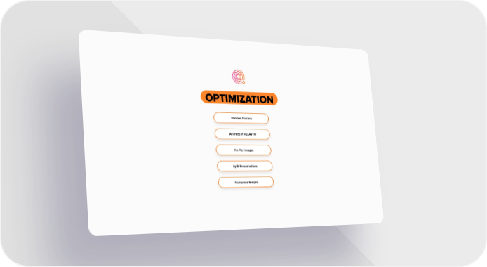 OPTIMIZATION Remove Footers Animate in RELAYTO No Flat Images Split Presentations Compress Images