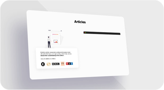 Articles Including articles can provide additional information that’s relevant to the topic you’re presenting, which helps viewers deepen their understanding of the content. Ideas for articles to embed:
