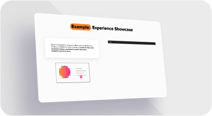 Example: Experience Showcase RELAYTO/ Experience showcase follows our best practices for creating a scrollable microsite. Including; Immersive video, web constrained design, embedded content, Interactive navigation and much more.