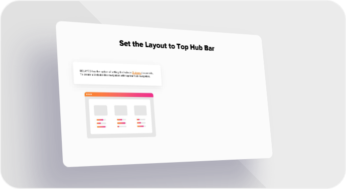 Set the Layout to Top Hub Bar RELAYTO has the option of setting the hubs in 3 views documents. To create a Website-like navigation with top-bar hub navigation.