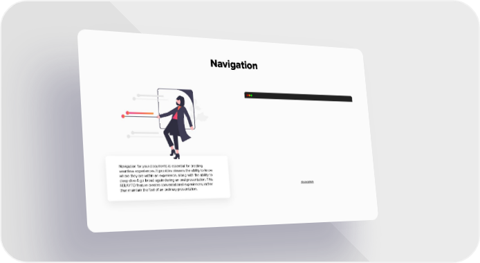 Navigation Navigation for your documents is essential for creating seamless experiences. It provides viewers the ability to know where they are within an experience, along with the ability to deep dive & go broad again during an oral presentation. This rla.to/pitch RELAYTO feature creates conversational experiences, rather than maintain the feel of an ordinary presentation.