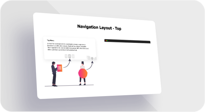 Navigation Layout - Top Top Menu A must for scroll view & the switchable viewing experience [between scroll & slide views]. Optimal for a larger viewable slide experience & condensable navigation titles. Must be used when you have a prominent left sidebar hub.