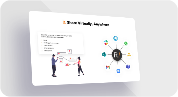 2. Share Virtually, Anywhere RELAYTO/ content can be shared in a variety of digital channels. Below are several examples: • Email • WhatsApp / text messages • Portal embeds • Email signatures • Client portals