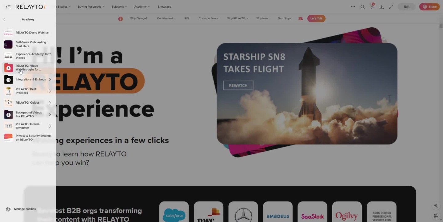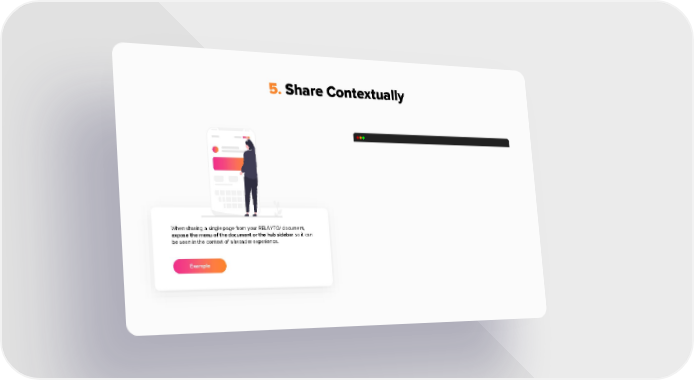 5. Share Contextually When sharing a single page from your RELAYTO/ document, expose the menu of the document or the hub sidebar so it can be seen in the context of a broader experience. Example