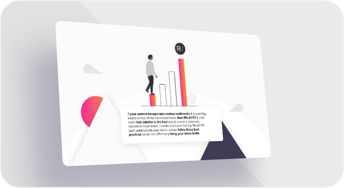 If your content incorporates various multimedia & supporting assets on top of the main experience, then RELAYTO’s multi realm hub solution is the best way to create a coherent, interactive experience. In order to ensure that the RELAYTO team understands your vision, please follow these best practices so we can effectively bring your vision to life.