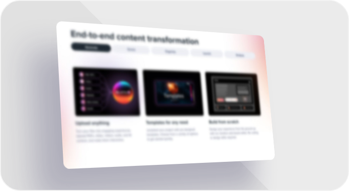 ### End-to-end content transformation Content transformation Text Image Video Audio 3D AR/VR Table Code A screenshot of a software interface showing a list of items on the left and a large, colorful, abstract image of a sphere with a ring, resembling a planet or a digital asset, on the right. A screenshot of a software interface showing a list of items on the left and a large, colorful, abstract image of a sphere with a ring, resembling a planet or a digital asset, on the right. Advanced asset filtering Advanced asset filtering allows you to filter assets based on their metadata, such as their name, type, and tags. This is useful for finding specific assets in a large library. A screenshot of a software interface showing a dark-themed workspace with a central area displaying a colorful, abstract image of a sphere with a ring, similar to the one in the first image. A screenshot of a software interface showing a dark-themed workspace with a central area displaying a colorful, abstract image of a sphere with a ring, similar to the one in the first image. Comprehensive file drag-and-drop Comprehensive file drag-and-drop allows you to drag and drop files from your computer into the software. This is useful for importing assets into the software. A screenshot of a software interface showing a dark-themed workspace with a central area displaying a grayscale image of a person's face, possibly a video frame or a processed image. A screenshot of a software interface showing a dark-themed workspace with a central area displaying a grayscale image of a person's face, possibly a video frame or a processed image. Scalable image generation Scalable image generation allows you to generate images at different sizes and resolutions. This is useful for creating images that are suitable for different platforms and devices.